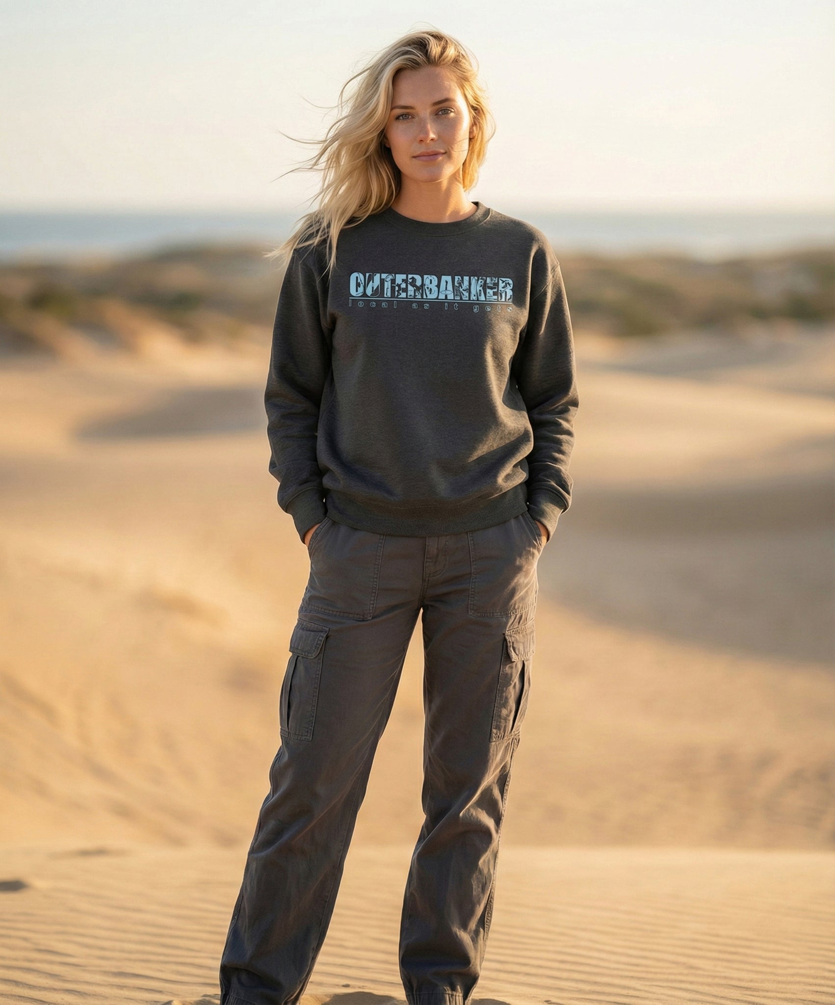 The OUTERBANKER crewneck represents a curated collection honoring the multifaceted identity of Outer Banks culture. This piece synthesizes the region's distinctive livelihoods—from commercial fishing and maritime trades to tourism and conservation efforts—alongside its profound connection to coastal ecosystems. Engineered for durability and comfort, it serves as wearable documentation of a community defined by resourcefulness, environmental stewardship, and cultural authenticity. The design acknowledges the diversity of voices and experiences that shape life along the barrier islands, from generational families to newcomers drawn by the area's natural appeal. An essential addition for those who understand that the Outer Banks represents more than geography—it's a philosophy rooted in respect for tradition, appreciation for wilderness, and commitment to community resilience.